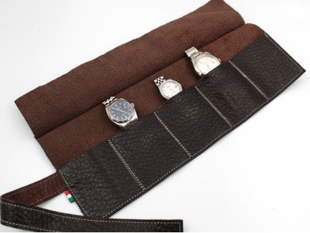 Watch Roll Travel Case 6 PLACES Leather Dove Luxury MADE ITALY