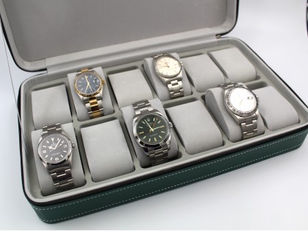 Porta Orologi 12 Posti EcoPelle Verde Interno Antigraffio Grigio
